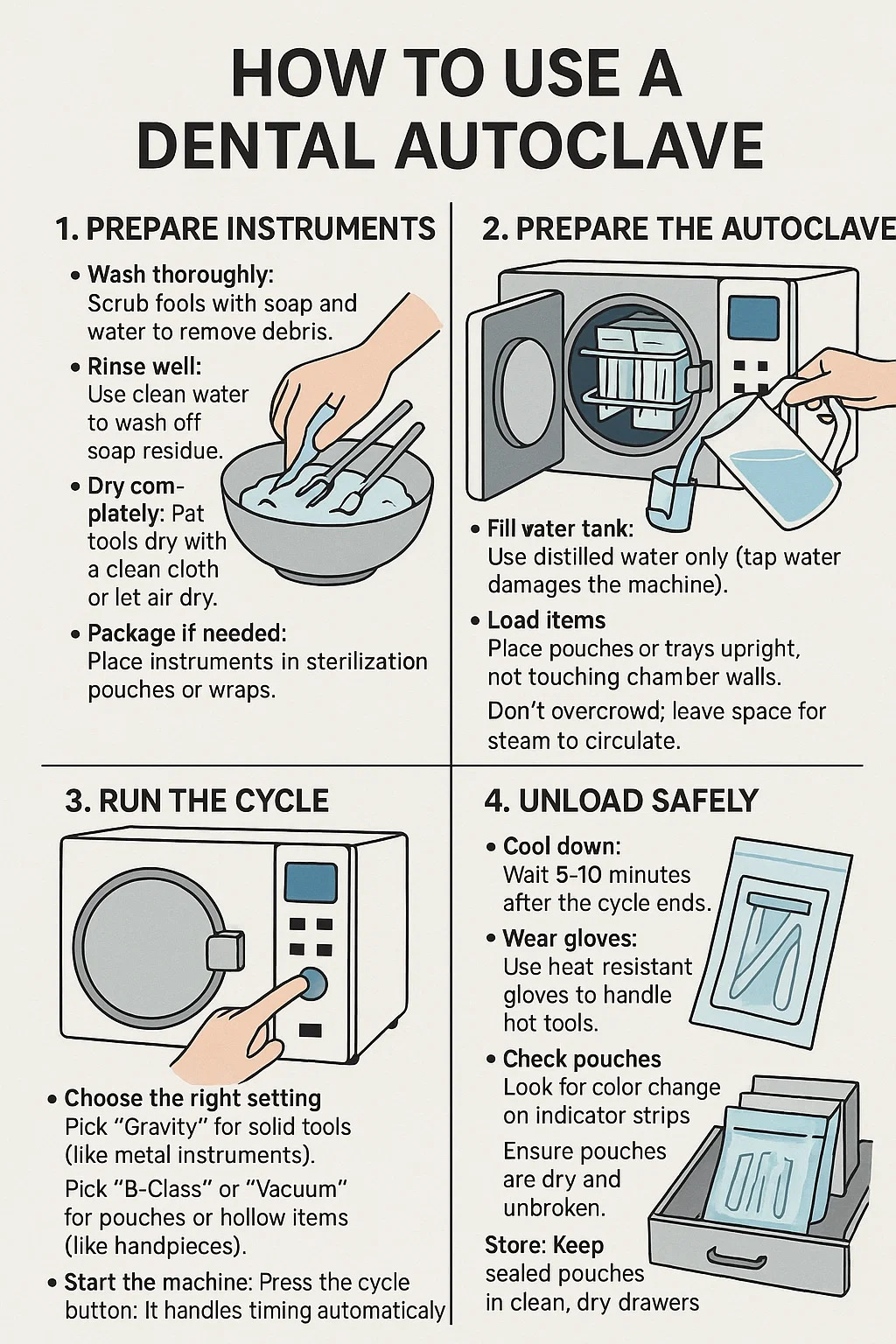 •Embale, se necessário: Coloque os instrumentos em bolsas ou invólucros de esterilização.